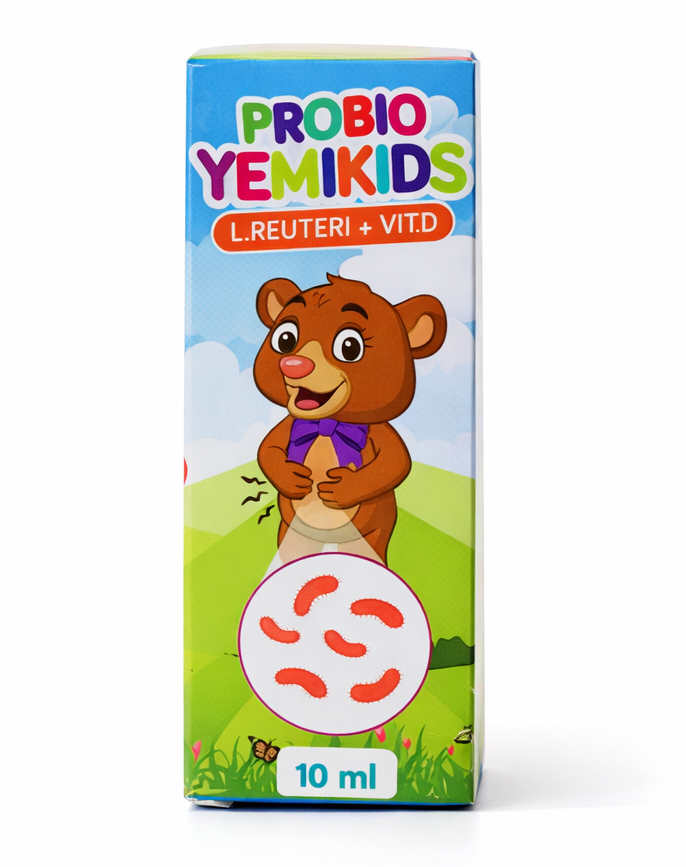 Probio YemiKids con L. reuteri y Vitamina D es un suplemento probiótico diseñado para apoyar la salud digestiva y el bienestar general de los niños. Su fórmula combina Lactobacillus reuteri, una cepa probiótica ampliamente utilizada en pediatría, junto con vitamina D, que contribuye al desarrollo del sistema inmunológico.